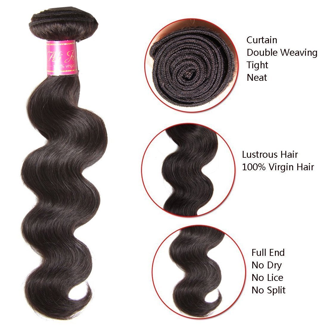 Amazon Com 3 Bundles With Closure Human Hair 16 16 16 14 Brazilian Virgin Hair Body Wave Bundles With Lace Closure Natural Black Human Hair Extensions Beauty Personal Care